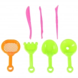 1 kilogramm homok rengeteg lehetőséget biztosít kastélyok és formák megalkotására. A szett tartalmaz számos kiegészítőt, mint például: szitát, lapátot, gereblyét és modellező pálcikákat, melyek segítik a szórakozás folyékonyságát.