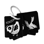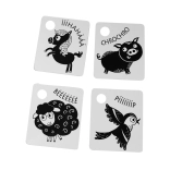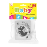 A kontrasztos fekete-fehér kártyák ideális eszközök újszülöttek és csecsemők számára, akik látása a legegyszerűbb formákra és a magas kontrasztra reagál a legjobban. A praktikus nyílásnak és a műanyag karikának köszönhetően a kártyák könnyen felakaszthatók a kiságy fölé, a babakocsira, vagy egy áttekinthető szetté fűzhetők.