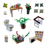 Állítsa össze a bútorokat, mint egy valódi házban, a zöld kanapétól a fa dohányzóasztalig.