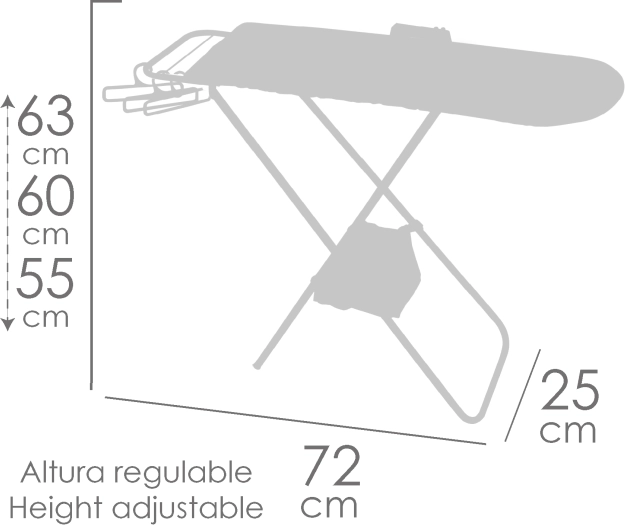 A GALA kollekció összecsukható babavasalódeszkája hiteles élményt nyújt a gyerekeknek a ruhácskák gondozásában. A 55 / 60 / 63 cm-es állítható magasságnak köszönhetően együtt nő a gyermekkel, és évek múltán is kényelmes marad. A rózsaszín–fehér dizájn finom sportos motívumokkal és kiegészítő kék színnel modern és játékos hatást kelt.