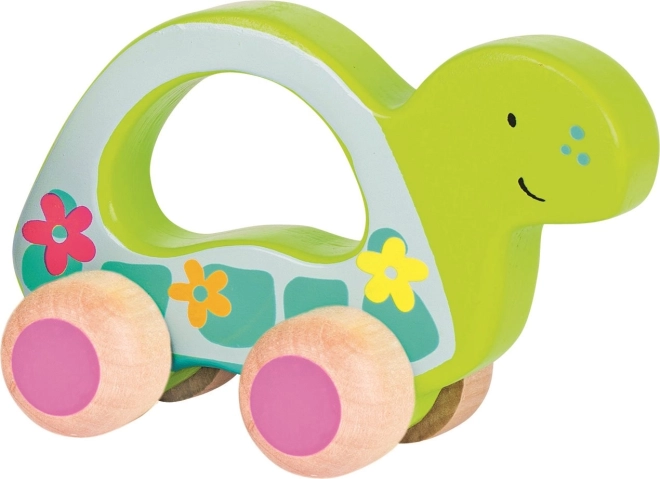 Aranyos gurulós teknős a GOKI-tól, amely tömör fából készült, és könnyű fogása miatt ideális a kisgyermekek számára.