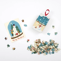 Fedezze fel a téli táj varázsát ezzel az egyedi kirakóval. Mini csomagolás tartalmazza az összerakott motívum előképét, amely megkönnyíti az összerakást mindenki számára. A puzzle bájos havas házikó alakú dobozban van csomagolva, amit egy képkivágással ellátott címke egészít ki.