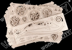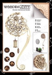 Ez a kifaragott inga modell hihetetlenül szép, precízen megtervezett, nyitott mechanizmussal. Állítsd össze ezt a gyönyörű tárgyat, amely otthon dekorációként is szolgál, és meditációhoz is használhatod. Az élet ritmusa lehet intenzív, a mindennapi stresszel és felgyülemlett fáradtsággal... Sok pszichológus ajánlja a meditációt, mint a lelki és testi ellazulás, összpontosítás és pihenés módját. Szerezd meg ezt a modellt, és találd meg a nyugalmat, a szépséget és az örömöt! - A hajtó súly lefelé húzásával indítható, - egyenletes lengés kiegyenlített ritmusban, - az inga ritmusának megváltoztatásához rögzíts érméket a súlyra vagy az inga belső oldalán, - az érmék száma befolyásolja a lengés periódusát, - érdekes és tanulságos, - megtanítja a mechanikus mozgás elveit, a fizikai törvényeket és az esztétika jelentőségét, - egy indítással a működési idő körülbelül 120 perc. A WOODEN CITY Pendulum 3D puzzle szokatlan ajándék az igényes szépség- és harmóniakedvelőknek. Nehézség: 3/5 (Wooden City besorolás szerint) Becsült összeszerelési idő: 5 óra A WOODEN CITY fa 3D puzzle-k részletesen kidolgozott, működő mechanikus modellek, amelyek ragasztó és szerszám nélkül állíthatók össze. Környezetbarát faanyagokból – minőségi nyírfából készült rétegelt lemezből – készülnek. A WOODEN CITY mechanikus fa puzzle-jeivel órákig tartó szórakozásban lesz részed az építés során, és közelről ismerheted meg az áttételeket, a gumimotorokat, a fogaskerekeket és más alkatrészeket. működő mechanikus modell összeszerelés ragasztó és szerszámok nélkül minőségi kivitel természetes anyagból részletgazdag kidolgozás képes útmutató FIGYELMEZTETÉS: Az összeszereléshez tördelhető pengéjű kés, olló, csiszolópapír és viaszgyertya szükséges (nem része a terméknek). A megfelelő működés és a problémamentes üzem érdekében a tengelyeket és a fogaskerekeket viaszolni kell. Az összeszerelt puzzle mérete kb. 58,6 × 25,1 × 7,4 cm