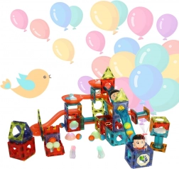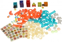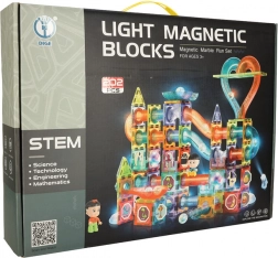 A 3 éves kortól ajánlott, nagyszabású mágneses építőkészlet segítségével lenyűgöző golyópályát, valamint 2D/3D építményeket lehet megalkotni. Az áttetsző elemek mágnesekkel kapcsolódnak, és egyes elemek világítanak – beleértve a golyókat is, amelyek mozgás közben felragyognak, és csodás fényshow-t teremtenek. A készlet fejleszti a finommotorikát, a térbeli képzelőerőt és a logikus gondolkodást, valamint ideális a közös családi szórakozáshoz.
