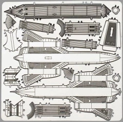 Az egyes darabokat távolítsa el a fémlemezekből; szükség esetén használjon kis oldalcsípő fogót (nem tartozék). Az alkatrészeket reteszekkel kell összekapcsolni, melyek egy fülecskéből és egy nyílásból állnak. A fülecskét kis, vékony fogóval (nem tartozék) hajlítsa meg, és fokozatosan kapcsolja össze az összes reteszt, amíg egy rendkívül valósághű remekmű nem születik!