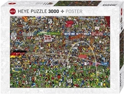 Fedezze fel a futball gazdag történelmét Alex Bennett angol művész alkotásaival, amelyeket ebben a lenyűgöző puzzle-ben gyűjtött össze. Számtalan híres alakot és eseményt tartalmaz, például a 2014-es brazíliai világbajnokságot. Minden darab precízen illeszkedik össze a németországi minőségi kidolgozás révén, ahol a HEYE márka 1962 óta van jelen a piacon.