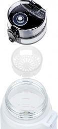A tritán nem nyeli el a szagokat vagy ízeket, BPA-, PVC- és ftalátmentes, egészségre ártalmatlan. A palackon jól látható űrmérték 500 ml-ig, valamint praktikus hordpánt található a könnyű viseléshez. Ismételt használatával ráadásul csökkenti az egyszer használatos PET palackok műanyaghulladékát.