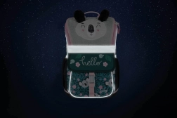 A Baagl Zippy Bébi Koala szett egy gyermeki álom. Tartalmazza az ergonomikus iskolai táskát merev testtel, ami könnyű, mégis tágas, 18 literes kapacitással és 6 kg terhelhetőséggel. A táska innovatív felnyitható rendszerrel rendelkezik, mely megkönnyíti a hozzáférést az iskolai eszközökhöz.