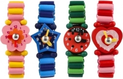 Az órák gyerekek kényelmét szem előtt tartva készültek – rugalmas gyöngyös vagy szegmenses pántok könnyen alkalmazkodnak a csuklóhoz, a sima faelemek pedig kellemes tapintásúak. Ideális apró ajándéknak, óvodába is, illetve az otthoni „játékos tanuláshoz”.