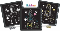 A Barbie vázlatfüzet egyedülálló élményt nyújt a színek felfedezésében. Egyszerű kaparással tárja fel az elegáns színek és minták világát.
