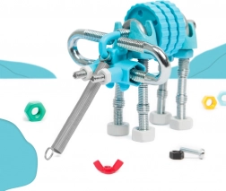 Tartós fém csavarok, anyák és rugók, színes műanyag csatlakozókkal kombinálva stabil, többször szétszedhető modelleket tesznek lehetővé.