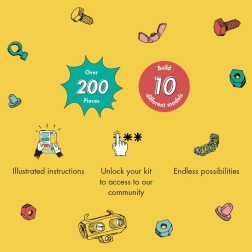 Engedd szabadjára a fantáziád, és építs olyan legénységtagokat, mint a MechBit, WheelBit és OscarBit, vagy indulj el a saját, egyedi alkotások útján. Az OffBits építőkészlet kompatibilis a mindennapi tárgyakkal, így alkotásaidat hétköznapi, körülötted lévő anyagokkal bővítheted és továbbfejlesztheted.