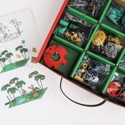 JungleBit Építőkészlet kalandot hoz az otthonodba a dzsungel világából. Több, mint 200 színes alkatrésszel, beleértve a különleges csavarokat és anyákat, egyedi modelleket vagy új találmányokat hozhatsz létre a fantáziád szerint.