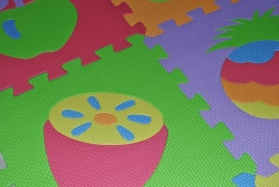 Habpuzzle különféle gyümölcsös motívumokkal, kivehető elemekkel, 3 éves kortól.