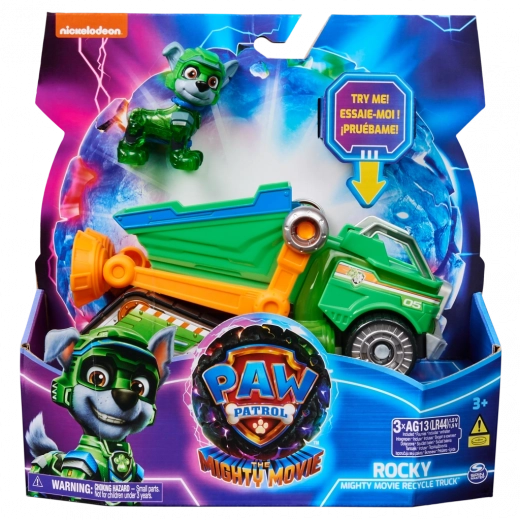 Csatlakozz Rockyról és élj át izgalmas mentőkalandokat a Mancs őrjárat: A szuperfilm járművében! Ez a Mancs őrjárat kukásautó több mint 18 centiméter hosszú és 10 centiméter magas, szuper elegáns dizájnnal, mozgatható szeméttartó-karokkal és izgalmas hangeffektekkel, szinkronizált villogó fényekkel – fantasztikus kiegészítő minden Mancs őrjárat-rajongó gyűjteményéhez (az elemek a csomagban vannak)! Rocky a Mancs őrjárat: A szuperfilm zöld egyenruháját viseli, áttetsző elemekkel és menő sisakkal. Ültesd Rockyt a kukásautó ülésébe, ezzel különböző helyeken aktiválod a jármű világítását, és figyeld, ahogy a mancsai is felvillannak, hogy a mentőakció még izgalmasabb és szórakoztatóbb legyen, miközben egyik küldetésről a másikra száguldotok! A Mancs őrjárat világának játékaival a gyerekek játék közben fejleszthetik képzelőerejüket és finommotorikájukat, miközben újraélik kedvenc jeleneteiket a filmből. Még több szórakoztató és izgalmas, a Mancs őrjárat sorozat ihlette küldetésért gyűjtsd össze az összes filmből ismert játékot, például a lenyűgöző parancsnoki repülőgép-anyahajót, és a Mancs őrjárat különleges kiadású játékait lányoknak és fiúknak, mint a Mighty Pups, Aqua Pups és Big Truck Pups figurák és játékkészletek (mindegyik külön kapható), és élj át végtelen kalandokat kedvenc kutyahősöddel és Rocky mentőautójával a Mancs őrjárat: A szuperfilmből!