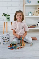 Bemutatjuk az egyedülálló Fa építő készletet gyerekeknek, amely lehetővé teszi a kéz-szem koordináció, a logikai gondolkodás és a kreativitás fejlesztését. A készlet tartalmaz csavarokat, léceket, anyákat, kerekeket, valamint csavarhúzót és kulcsot - mindent, ami szükséges a járművek összeállításához.