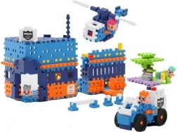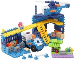 építőelemek, 4 figura, elemek az őrs, a helikopter és a járőrkocsi megépítéséhez, kiegészítők