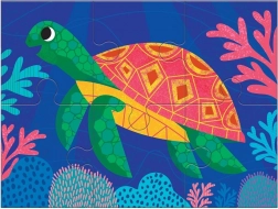 Ez a kreatív 4 az 1-ben készlet négy különálló kirakót tartalmaz a víz alatti világ kedves motívumaival – bálna, teknős, polip és halacska. A darabok újrahasznosított kartonból készültek, matt felülettel a szép színekért és a kellemes tapintásért. Minden kirakó eltérő darabszámú (4, 6, 9, 12), így a gyerekek lépésről lépésre haladhatnak, fejlesztve finommotorikájukat, türelmüket és logikus gondolkodásukat.