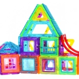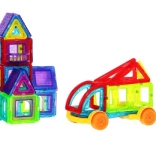 | | A nagy mágneses kockakészlet 3 éves kortól ajánlott játék, de szívesen játszanak vele a nagyobb gyerekek és még a felnőttek is. Az építőkészlet pozitívan hat a kreativitás fejlődésére, türelemre és koncentrációra tanít. A kockák könnyűek és tartósak, és lenyűgöző építmények készíthetők belőlük. Hajrá, kezdődhet az építés! | A készlet tartalma | * kockák, összesen 184 elem * 4 alváz két kerékkel, kb. 9 cm x 5 cm méretben, * 8 elem az óriáskerék szerkezetéhez, * 2 ötszög, * 2 hatszög, kb. 8,5 cm x 7,5 cm méretben, * 8 erkélyes ablak, kb. 4 cm x 2,5 cm, * 2 hármas négyzet, kb. 13 cm x 4,5 cm, * 6 dupla négyzet, kb. 8,5 cm x 4,5 cm, * 56 négyzet, kb. 4,5 cm x 4,5 cm, * 24 ablak, kb. 7,5 cm x 4 cm, * 6 trapéz, kb. 6 cm x 4 cm, * 6 további elem, * képes útmutató, * csomagolás: kb. 51 cm x 35 cm x 5 cm. |