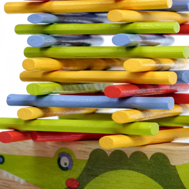 Fa Egyensúlyozó Játék Krokodil, egy szórakoztató és kreatív játék gyerekeknek, amely elősegíti a motoros készségek fejlődését és a türelmet. Színes pálcikákkal és krokodillal, mint alap, minőségi szórakozást nyújt órákon át.