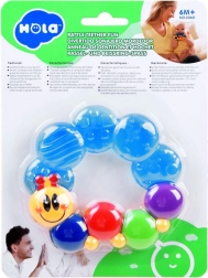 A cuki HOLA hernyó alakú rágóka tartós és biztonságos anyagokból készült, mindennapos használatra. Könnyű kialakításának és okos formájának köszönhetően a gyermek könnyen megfogja és egyik kezéből a másikba teheti. A textúrált szegmensek hatékonyan masszírozzák az érzékeny ínyt, és segítenek megnyugtatni a kellemetlenséget az első fogacskák megjelenésekor.