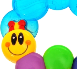 A hernyó textúrált szegmensei kíméletes ínymasszázst biztosítanak, és segítenek enyhíteni a kellemetlenséget a fogacskák növekedése idején.