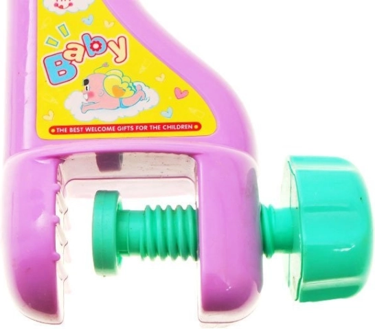 A körhinta szerkezete műanyag, és a játék automatikusan forog. A zenélő szerkezet pasztell házikó formájú, és lehetőséget kínál a lejátszott dallam hangerősségének beállítására.