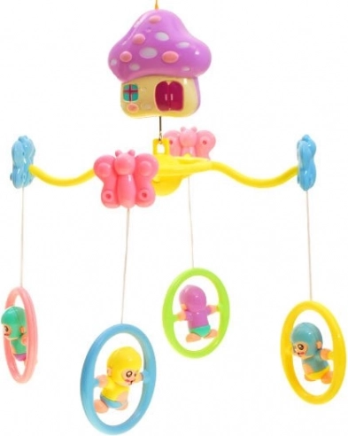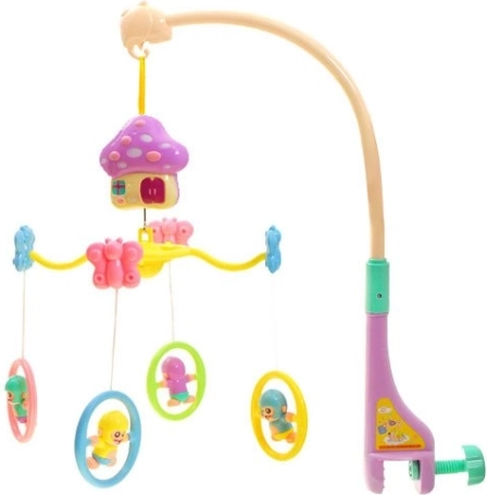 A pasztell körhinta zenélő szerkezettel ideális minden kiságyhoz. Kiváló módja annak, hogy lefoglalja a gyakran unatkozó gyermekét. A zenélő szerkezet finom és nyugtató dallamokat játszik, amelyek altatóként szolgálhatnak.