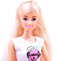 Hosszú szőke haj, divatos öltözet és kötény – ideális társ a kis szakácsnőknek és szakácsoknak.