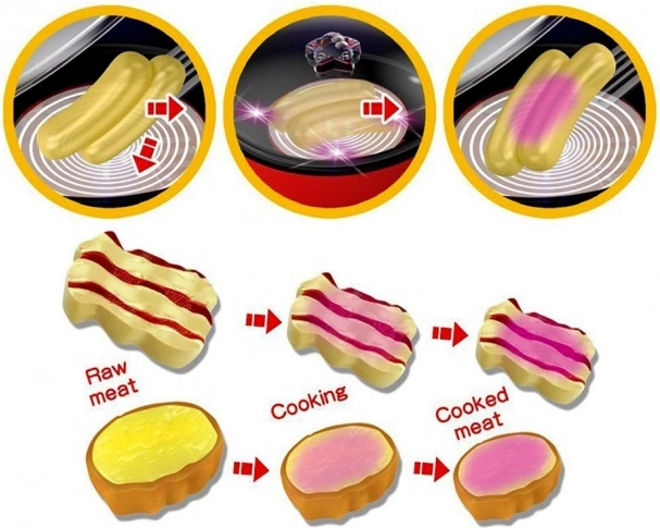A serpenyő autentikus sütési hangokat ad ki és színt változtat, ami közelebb hozza az igazi konyhai élményt.