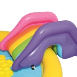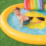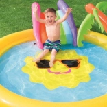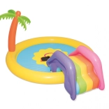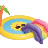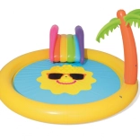 Változtasd a kertet mini vízi parkká! A BESTWAY gyerek vizes játszótér mosolygós napocska motívummal csábít pancsolásra és felfrissülésre a forró napokon. Elég csatlakoztatni a kerti tömlőt, és a beépített permetező frissítő szökőkúttá változik. A kivehető csúszda színes kivitele örömet szerez a kis felfedezőknek, míg a puha, mégis erős vinil kényelmes és biztonságos játékot garantál.