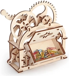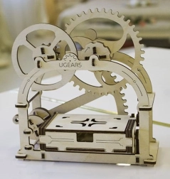 Fedezze fel a mechanika varázsát a UGEARS elegáns fa dobozával. Ez a mechanikus 3D modell ragasztó nélkül készül, és az oldalsó kar megnyomására automatikusan kinyílik, praktikus tárolóhellyé alakulva névjegykártyákhoz, gemkapcsokhoz vagy apró kincsekhez. A precíz kivitelezés, a finoman futó fogaskerekek és a szórakoztató összeszerelés a kezdőket és a műszaki rajongókat egyaránt lenyűgözi.