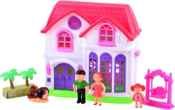 Az elegáns, tartós műanyagból készült, összecsukható családi babaház órákon át tartó, ötletes szórakozást nyújt a gyerekeknek. Tartalmaz gazdag kiegészítőket, a család és a kutyus figuráit, fényhatású csengőt és színes matricákat minden helyiség egyedi kialakításához.