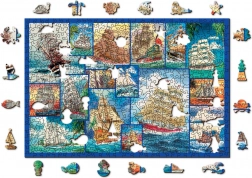 A WOODEN CITY márka csodálatos fa puzzle játéka szórakozást nyújt a különleges formájú daraboknak köszönhetően magasabb nehézségi szinten. Minden darab precízen lézerezett, hogy garantálja a tökéletes felületkezelést szilánkok nélkül. A rendkívül eredeti puzzle 505 egyedien formázott darabot tartalmaz, melyek elkalauzolnak a vitorlások és tengeri kalandok világába!