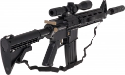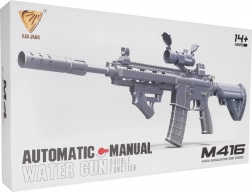 A nagy katonai M4 gélgolyós puska 14 éves kortól ajánlott. Kifejezetten hidrogél golyókkal használható, amelyek a célpont eltalálásakor szétpattannak. Ebben a modellben 7–8 mm átmérőjű golyók használata javasolt. A készlet része egy zacskó előkészítetlen golyó. A golyók előkészítéséhez öntse fel őket vízzel, hagyja állni kb. 4–6 órát, majd öntse le a felesleges vizet – így készen állnak a lövedékek. A puskán kézi és automata lövési mód is található. A fegyver irányzéka nagyítóval rendelkezik, a tárcsa segítségével beállíthatjuk a céltávolságot. A játékot egy 3,7 V-os akkumulátor táplálja, amely a készlet tartozéka. |