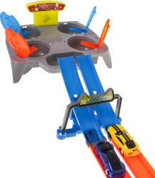 Lebilincselő pályakészlet, amely lehetővé teszi, hogy egyszerre két pályán versenyezzenek, így szórakozást és kihívást nyújt minden kis versenyzőnek.