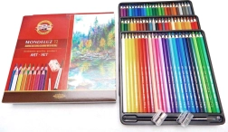 A 72 darabos, hatszögletű KOH-I-NOOR Mondeluz akvarellceruza-készlet minden kis művészt és iskolást örömmel tölt el. A ceruzák kiemelkednek fényállóságukkal, a színek tisztaságával és a széles színskálával. Víz és ecset használatával a nyomuk teljesen eldolgozható, így akvarell technikával lehet továbbrajzolni.