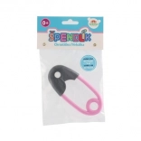 A biztosítótű csörgőt olyan műanyagból készítették, amely biztonságos a gyermekek számára, és könnyűségét egyszerű kezelhetőséget biztosít.