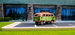 Az ablakok, ajtók és kerekek autentikus kivágásai egyedi vintage megjelenést kölcsönöznek a minibusznak. Kiváló dekorációként és gyűjtői darabként is.