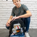 A hátizsák egyedi megjelenést kínál űrhajós ábrázolással az űrben, amely minden helyzetben kitűnik.