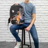 A hátizsák dizájnját repülő jégmadár motívuma, absztrakt formák és a hold díszíti. Ez a feltűnő minta a hátizsákot a figyelem középpontjába helyezi.