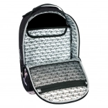 - Kiválóan praktikus cipzáros zsebek, beleértve a 15” laptop tárolására alkalmas helyet.