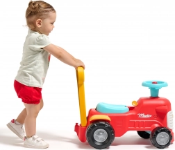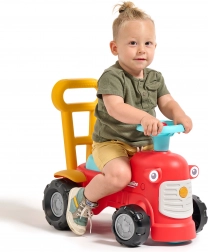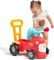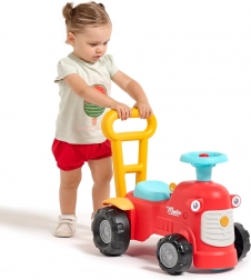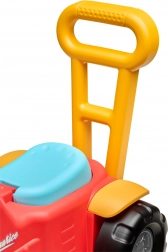 A traktor mögött állva a gyerekek ergonomikus támaszokat használhatnak a járás játékos és biztonságos formában való tanulására. Az ülés alatt egy kis tárolóhely található a kincseik számára.