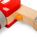 A kézi forgatás és a kattanó be/ki gomb autentikus szerszámhasználati élményt nyújt teljesen biztonságosan és játékosan.