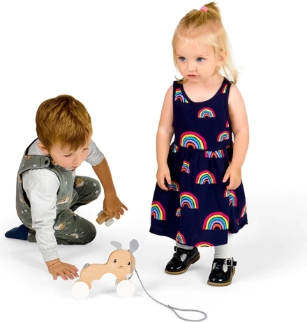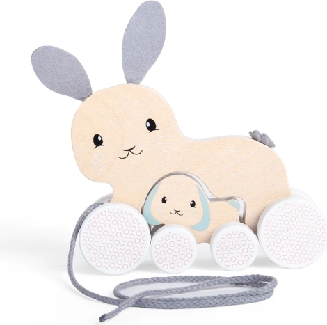 Tedd vidámmá az első lépéseket a bájos, húzható nyuszika-játékkal kölyökkel. Tanúsított FSC fából készült, biztonságos festékekkel és puha húzózsinórral a kényelmes fogásért. A simán gördülő kerekek játékos mintával egyenletes haladást biztosítanak, a játék pedig kiválóan fejleszti az aprómotorikát és a nagymozgásokat, valamint a koordinációt 1 éves kortól.