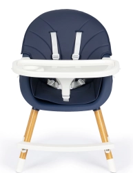 Stílusos 2 az 1-ben ECOTOYS gyerek etetőszék sötétkék színben, amely együtt nő gyermekével. Két magasságban használható, könnyen tisztítható huzattal, levehető, formázott tálcával, kényelmes ülőrésszel és 5 pontos biztonsági övekkel. A stabil fa lábak csúszásgátló végekkel és a mosható huzat biztonságot és egyszerű karbantartást garantálnak. Maximális teherbírás 20 kg.
