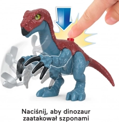 Fedezd fel az Imaginext JURASSIC WORLD akciójátékszettet Therizinosaurus és Owen figurákkal. A dinoszaurusz funkciógombbal mozgatja az elülső végtagokat, és lehetőség van a „felszabadításra” a hám alól. A figurák mozgatható ízületekkel rendelkeznek, minőségi műanyagból készültek, gumis elemekkel a biztonságosabb játékért. Ideális ajándék 3–8 éves gyerekeknek és minden JURASSIC WORLD rajongónak.
