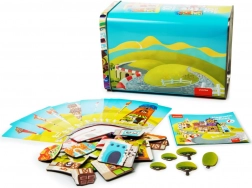 A készlet 10 papír sablont tartalmaz, amelyek alapján házikókat lehet építeni. A mágneses darabok kemény kartonból készültek, fényes felülettel, könnyen letörölhetők nedves kendővel. Ökológiai fából készült és 3 éves kortól ajánlott. Európában készült.