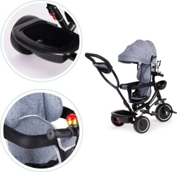 Gyermek háromkerekű forgatható üléssel és tetővel ECOTOYS szürke