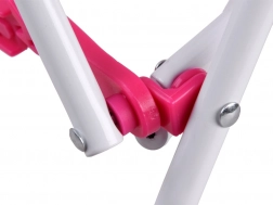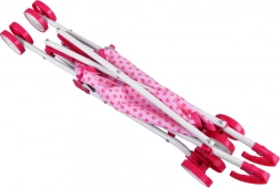 Az összecsukható szerkezet lehetővé teszi a könnyű tárolást és szállítást. A rózsaszín babakocsi könnyű és minden játékhoz kész.